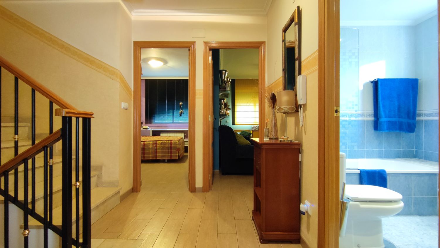 En la primera planta, tres dormitorios, incluido el principal con baño en suite y vestidor, más un baño adicional.