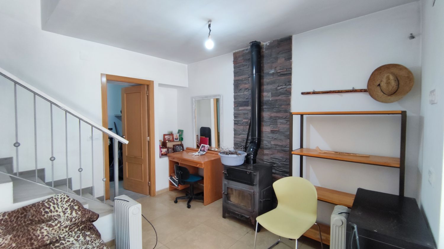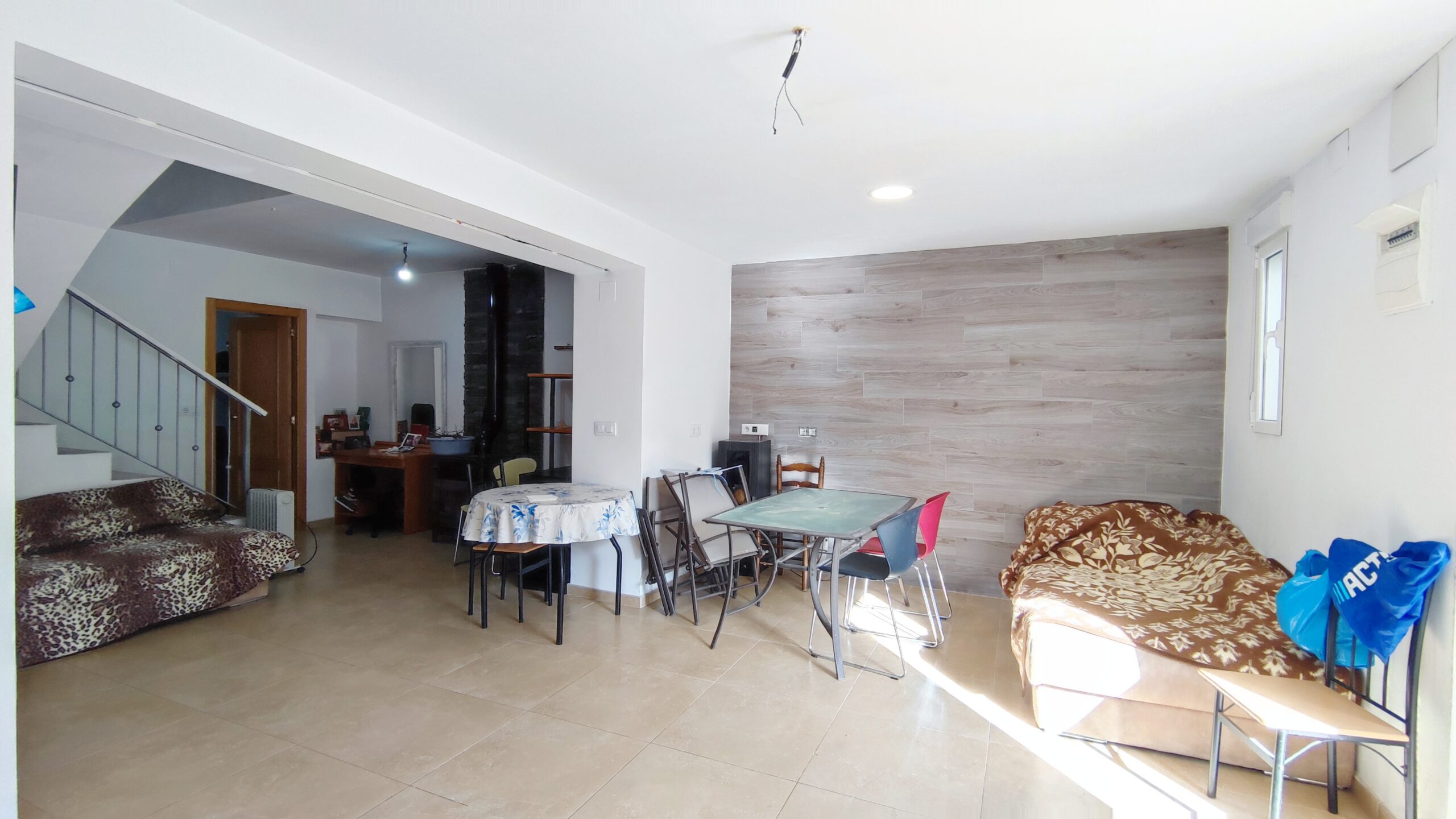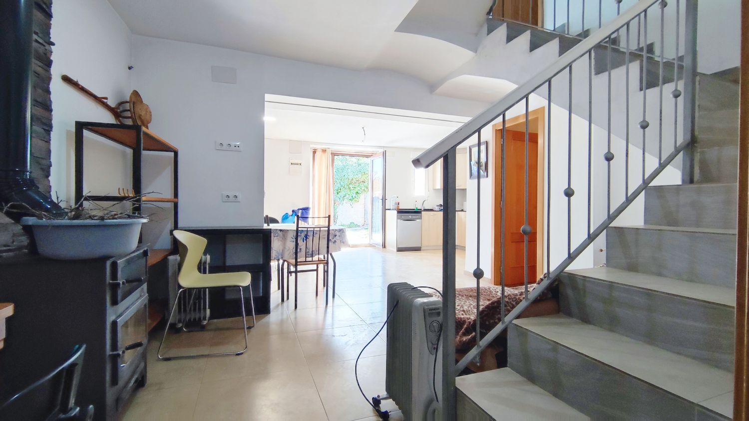 Dispone de salón-comedor con cocina americana amueblada y equipada, estufa de leña, 5 dormitorios, 3 baños completos y suelos de cerámica. Además, cuenta con preinstalación para radiadores y caldera de gas, proporcionando la posibilidad de adaptar la climatización a gusto del comprador.