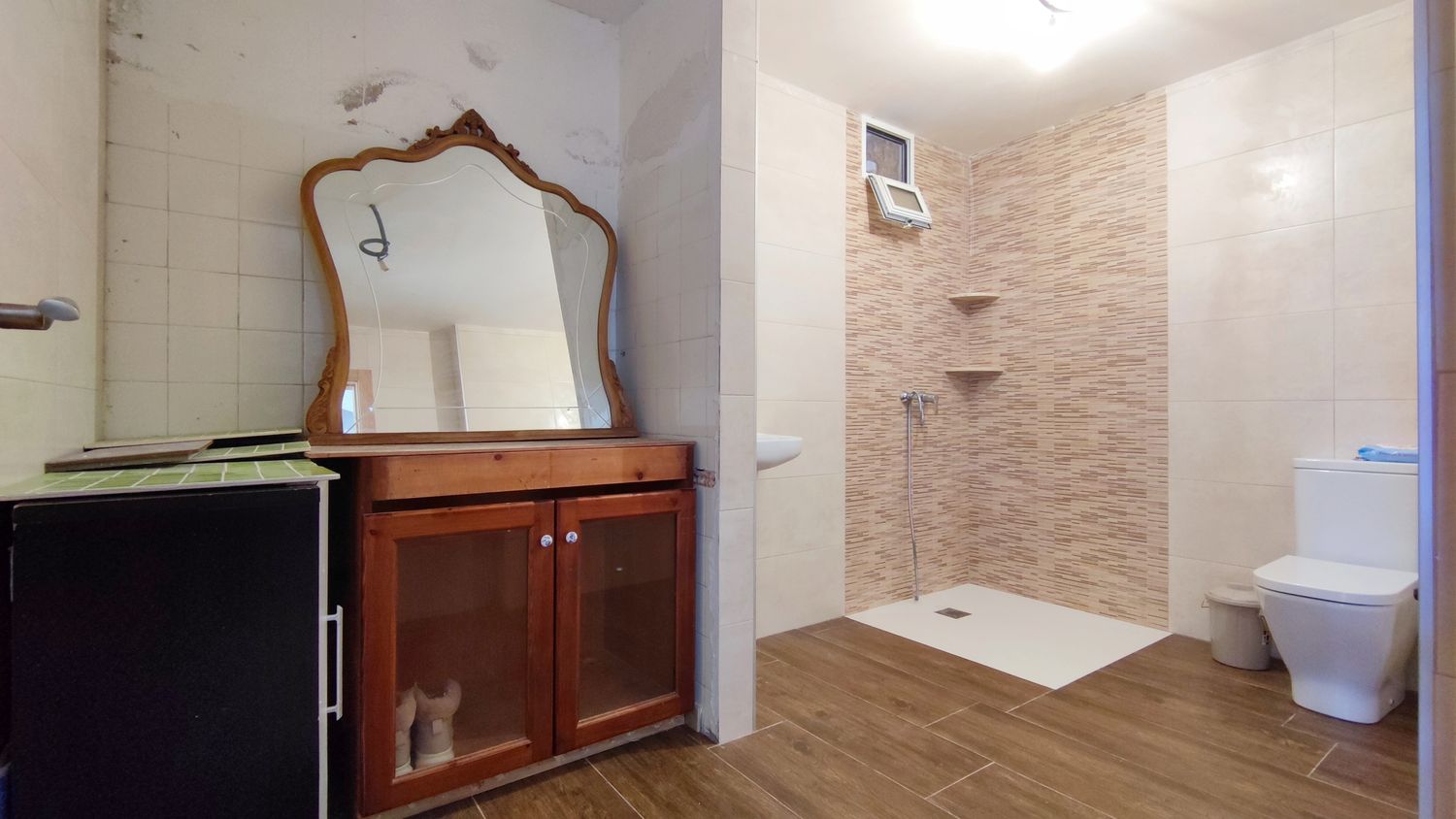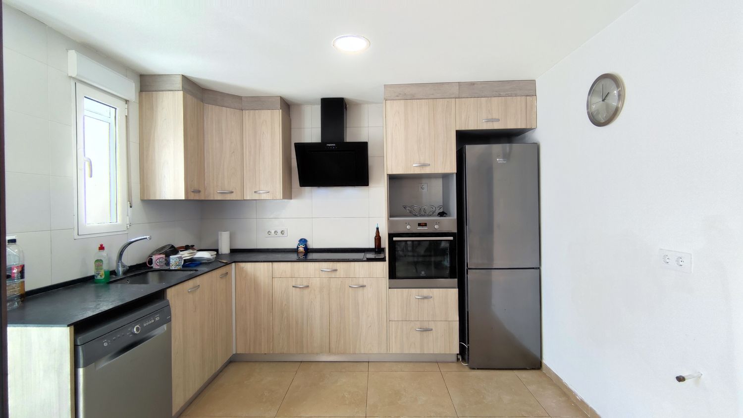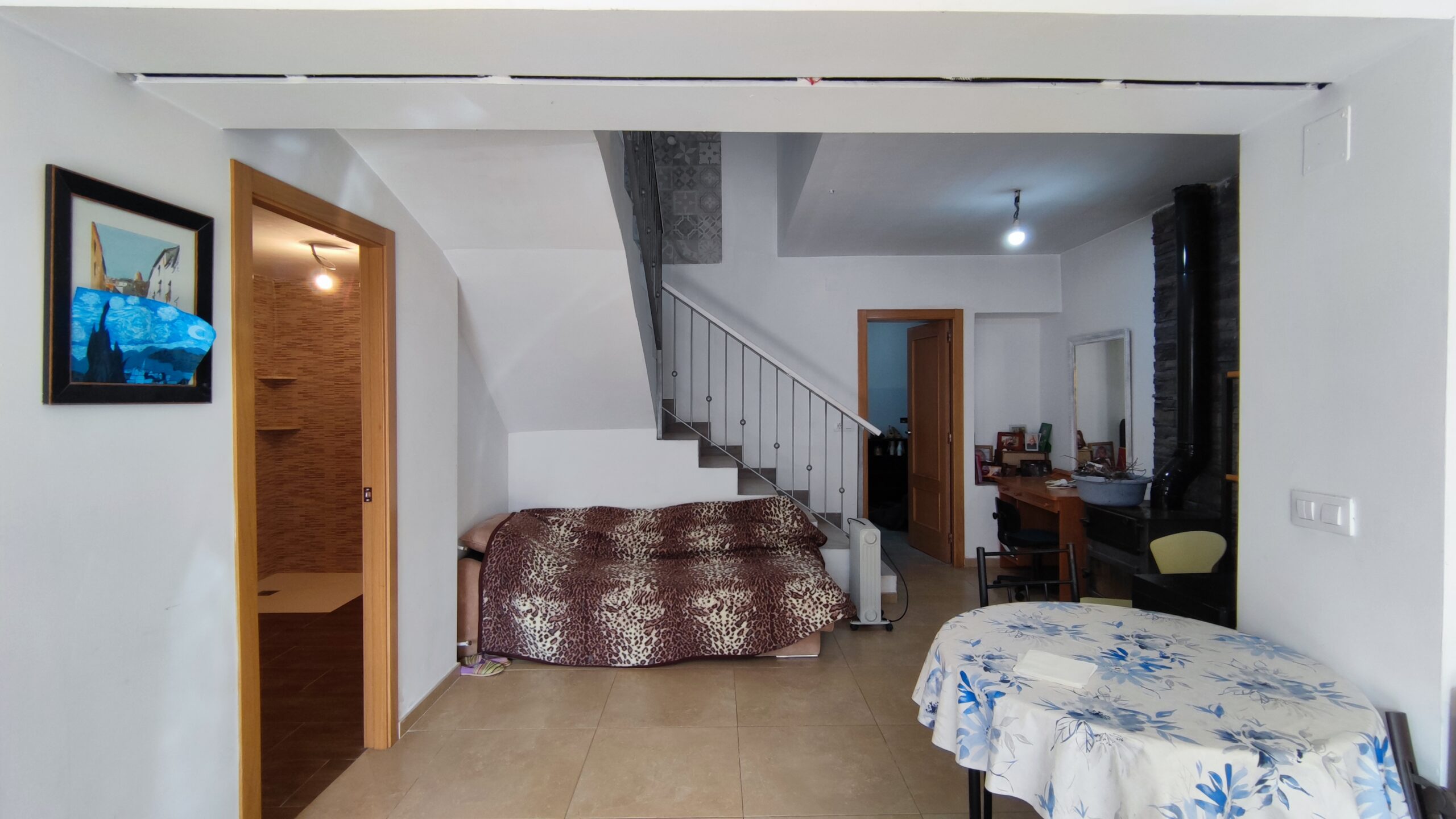 Dispone de salón-comedor con cocina americana amueblada y equipada, estufa de leña, 5 dormitorios, 3 baños completos y suelos de cerámica. Además, cuenta con preinstalación para radiadores y caldera de gas, proporcionando la posibilidad de adaptar la climatización a gusto del comprador.