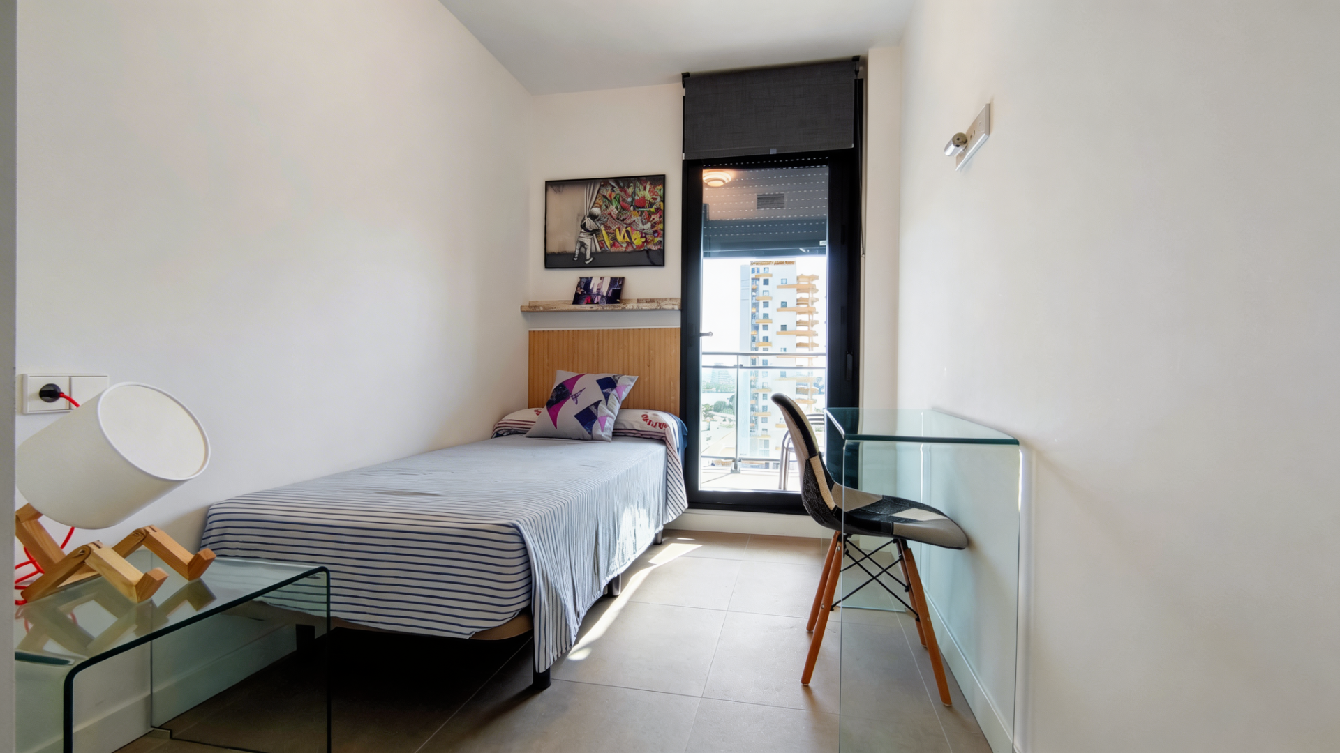 Situada en una 9ª planta con ascensor, la vivienda cuenta con 100 m² construidos, distribuidos en 3 dormitorios exteriores con armarios empotrados, 2 baños completos y un amplio salón-comedor con cocina americana totalmente equipada con mobiliario moderno y electrodomésticos de alta gama.