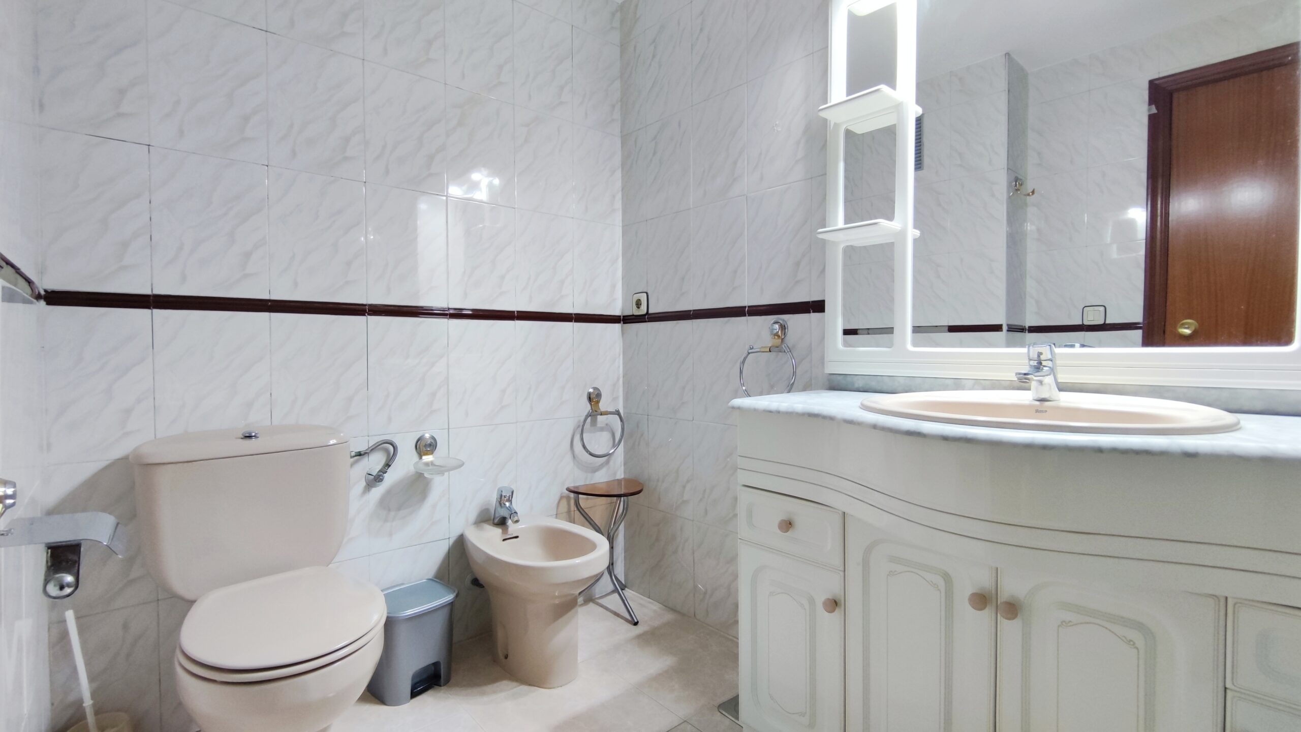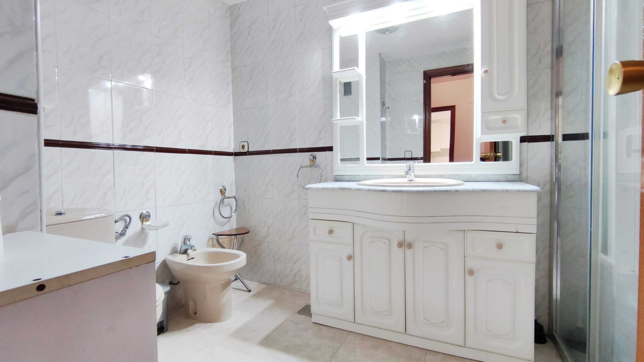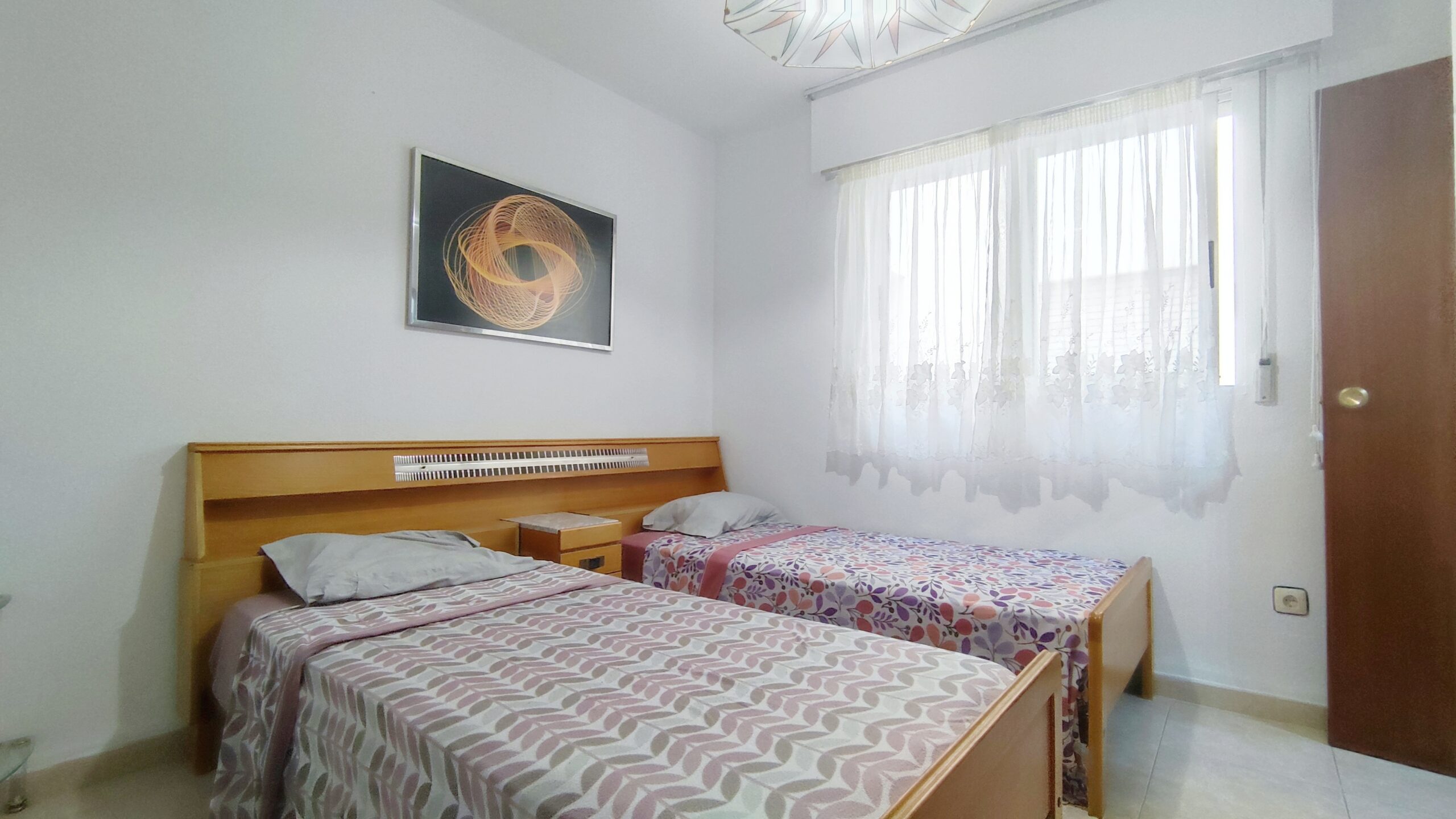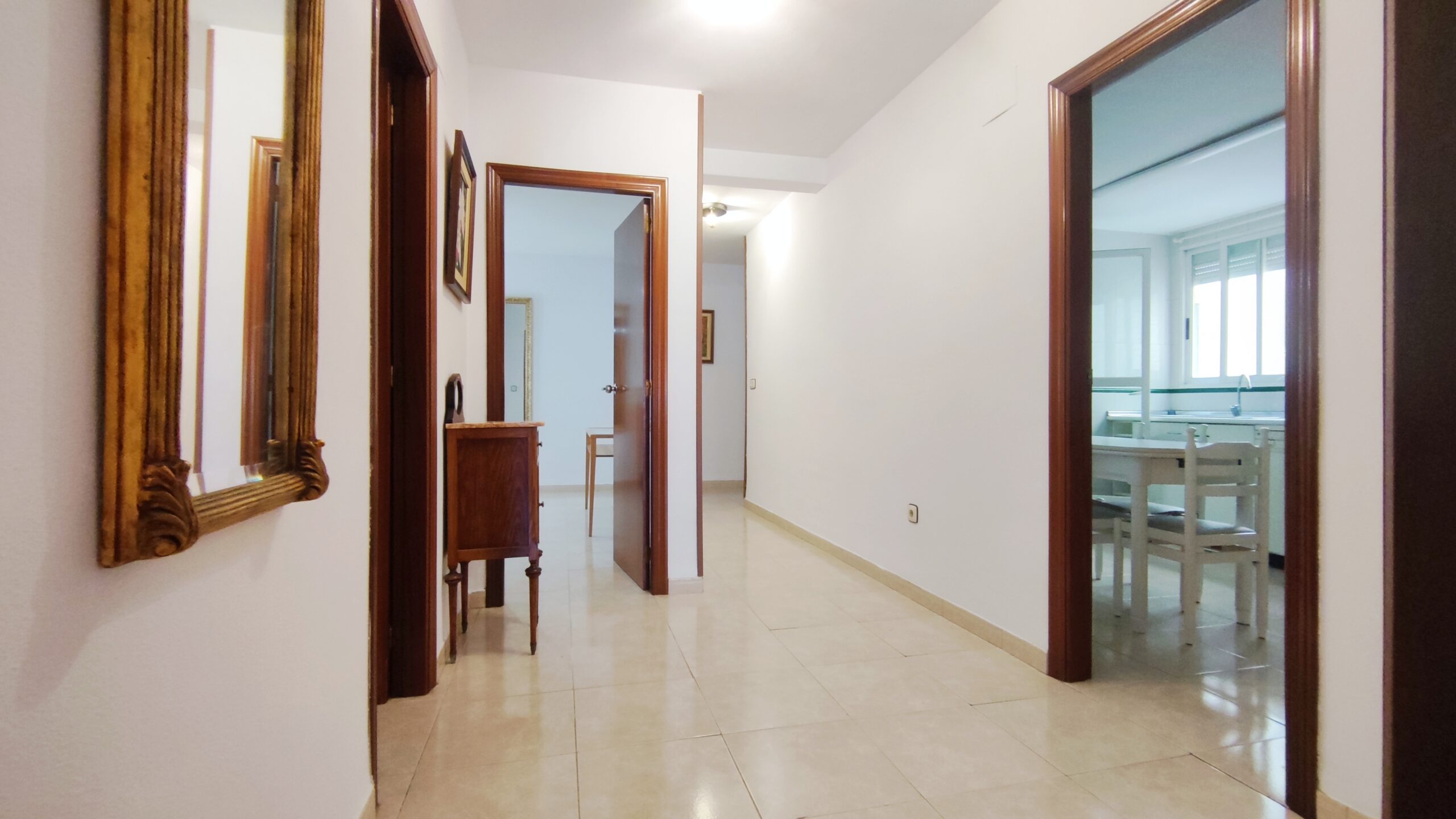 La vivienda dispone de tres dormitorios exteriores, todos ellos espaciosos y muy luminosos. El dormitorio principal, con grandes ventanales, se presenta como un espacio versátil y acogedor. La propiedad se completa con dos baños completos, funcionales y bien distribuidos.
