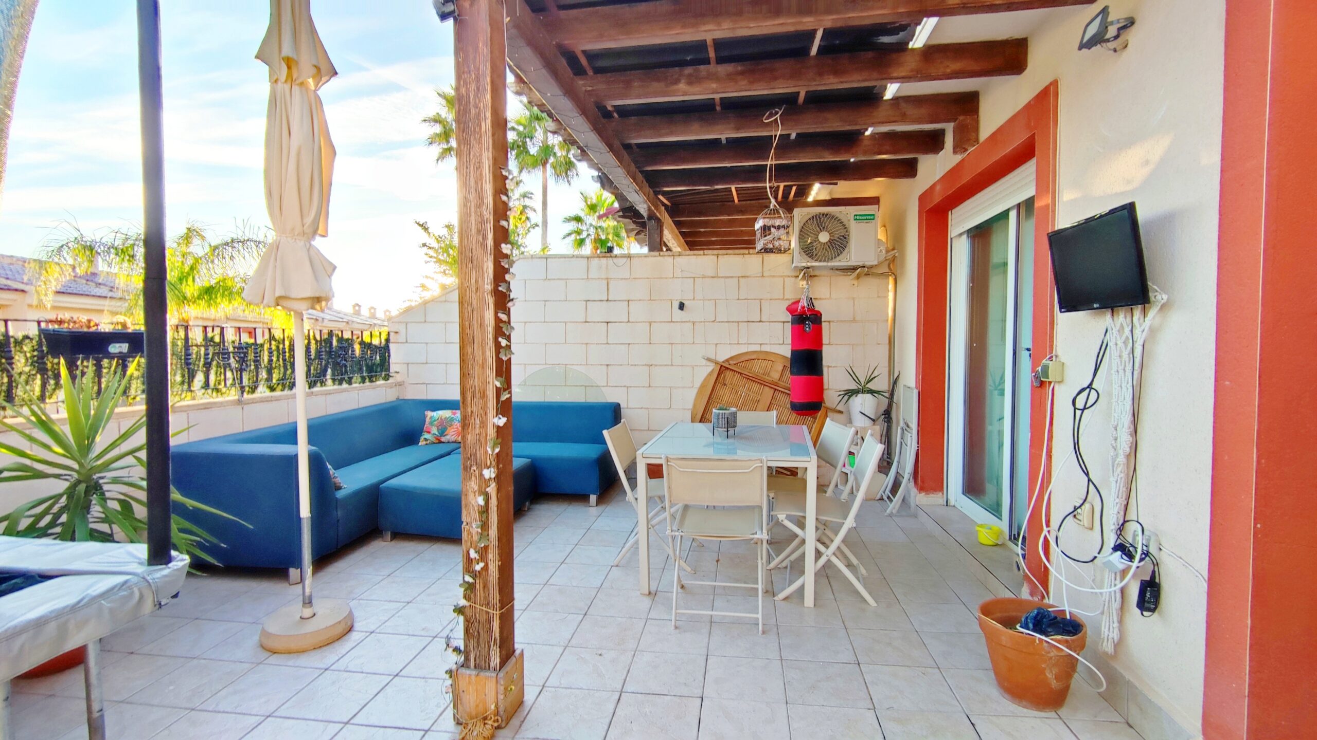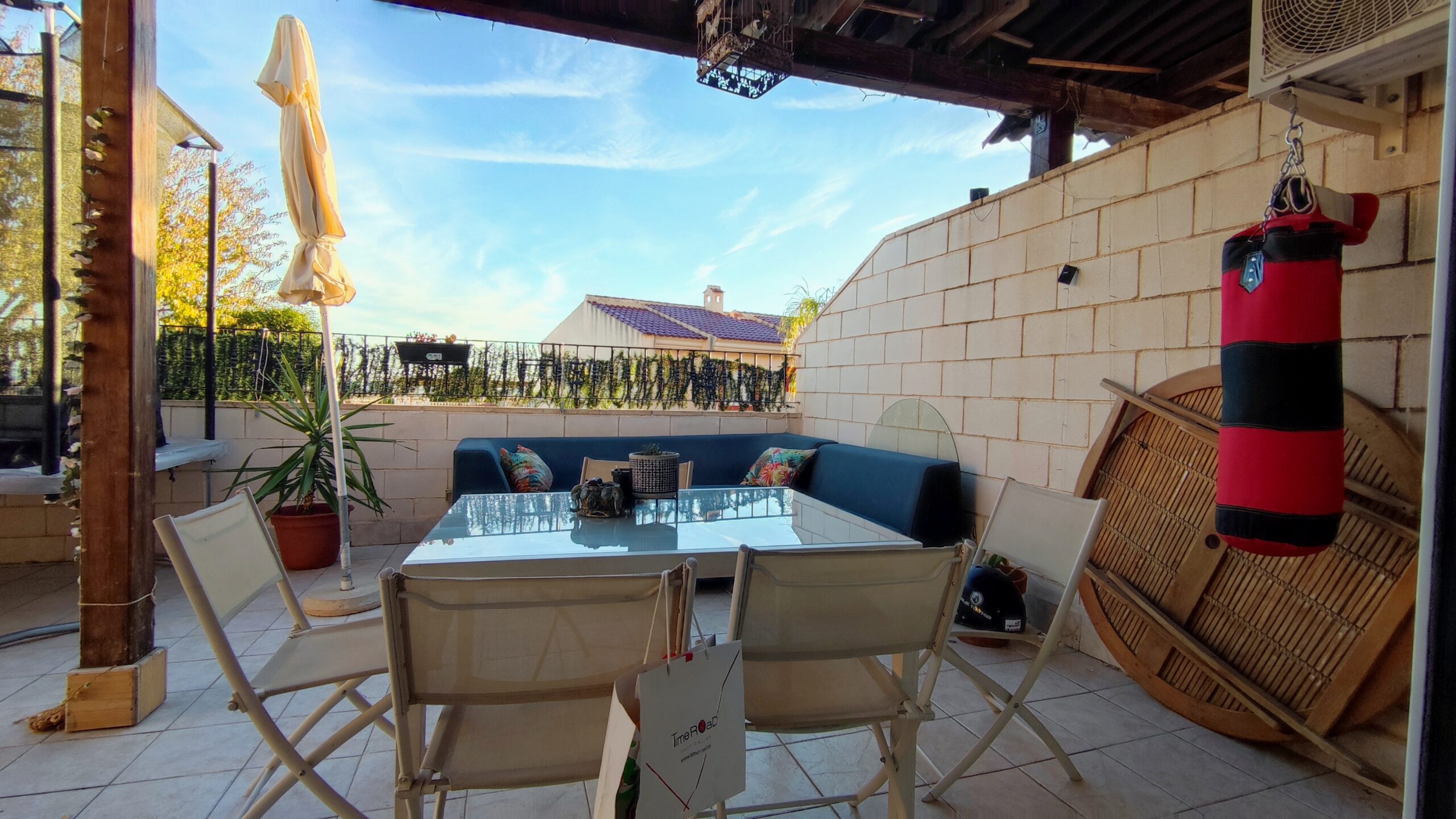 Se vende encantador piso en una cuidada urbanización de Mutxamel, un entorno pensado para disfrutar de la tranquilidad y las comodidades del día a día. La vivienda, con 120 m² construidos, destaca por su amplitud y por su fantástica terraza esquinera, equipada con una elegante pérgola de madera que convierte este espacio en el lugar perfecto para relajarse, compartir cenas al aire libre o disfrutar de los cálidos días mediterráneos.