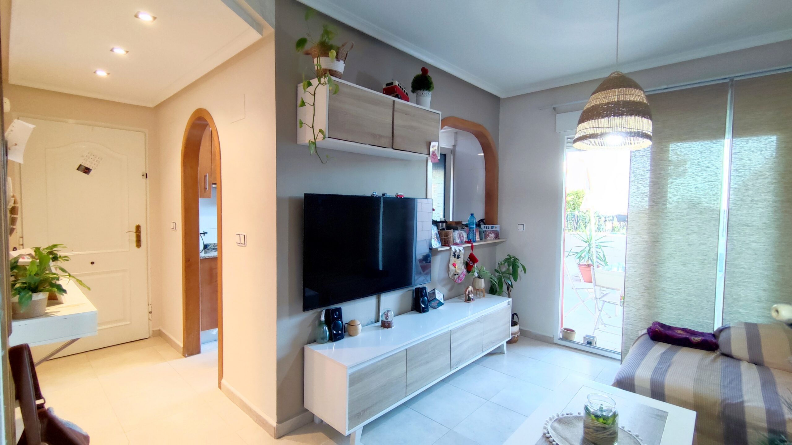 2 dormitorios, cocina equipada, salón con salida a terraza y acceso directo a las zonas verdes.