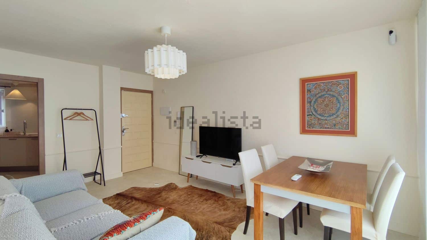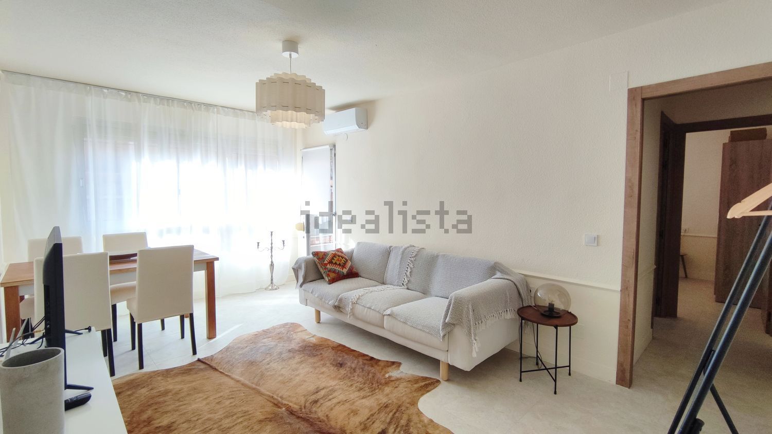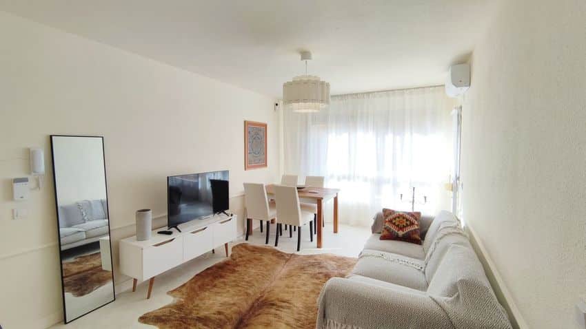 Luminoso salón-comedor con televisión y acceso directo a un acogedor balcón-terraza.
