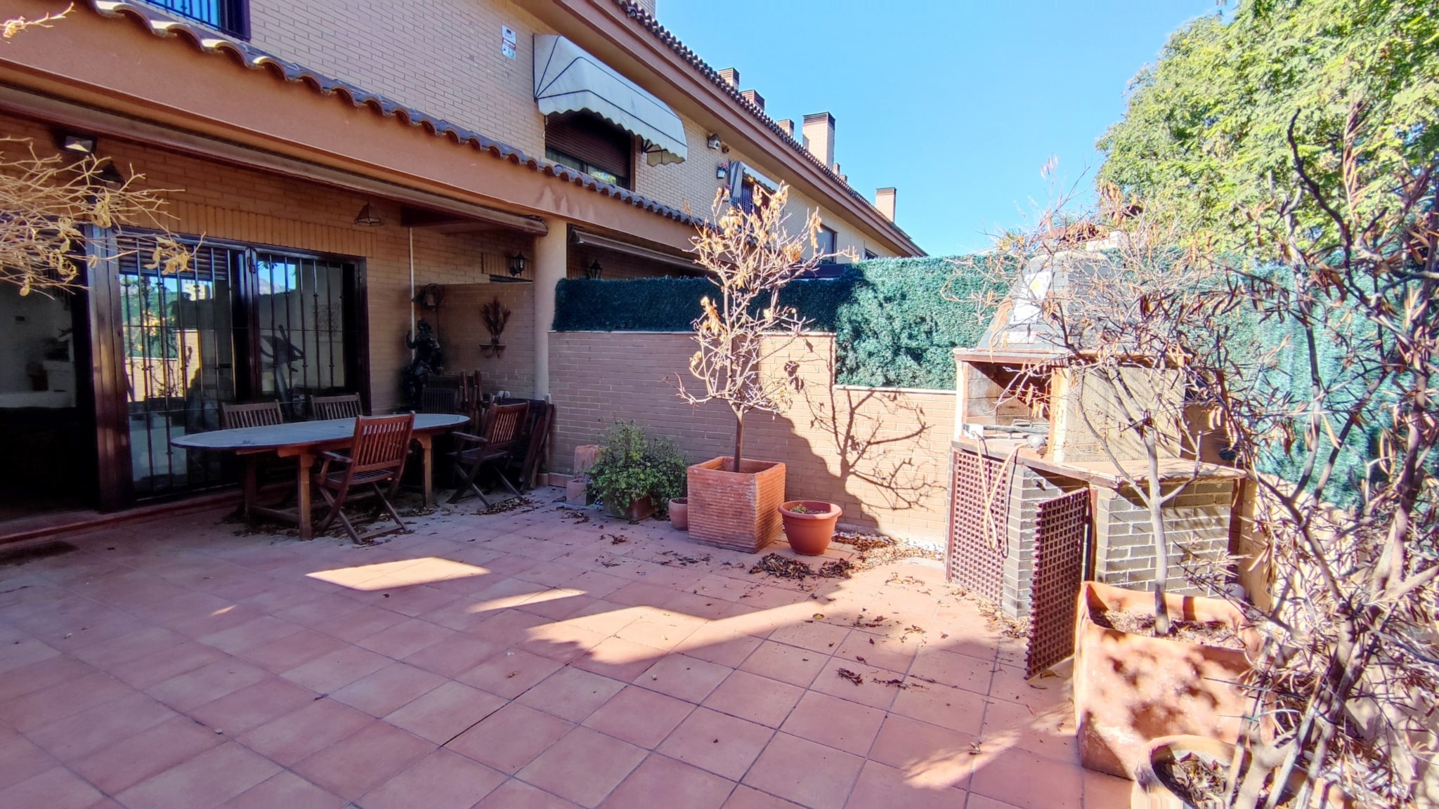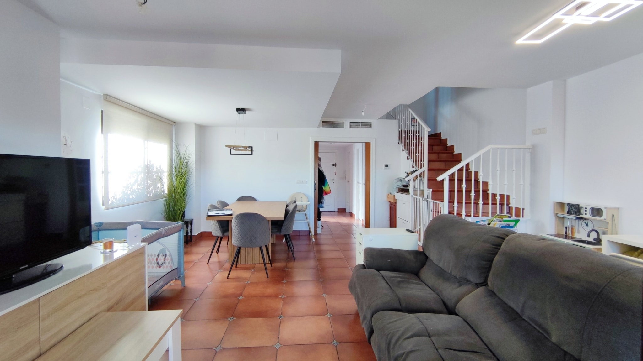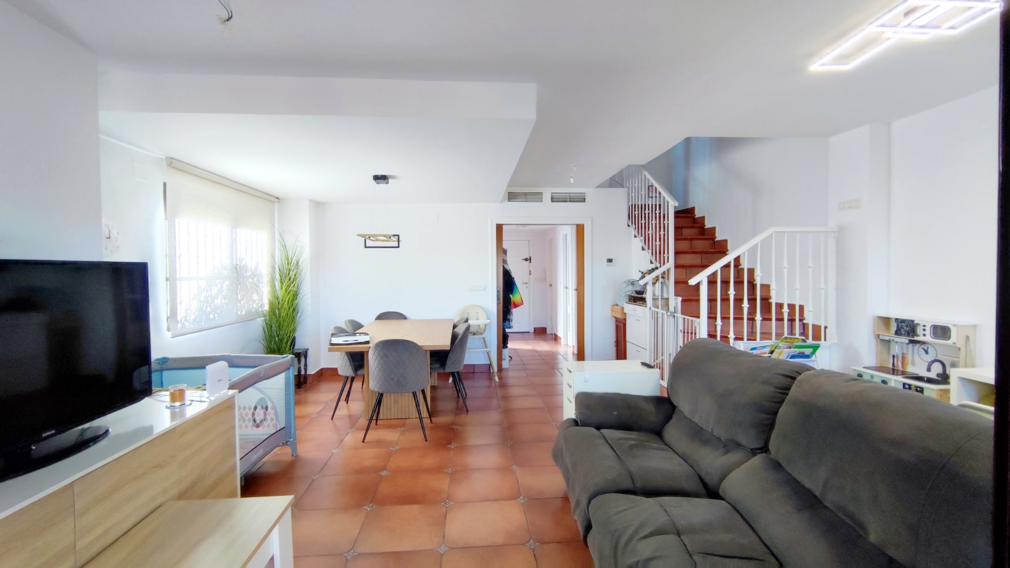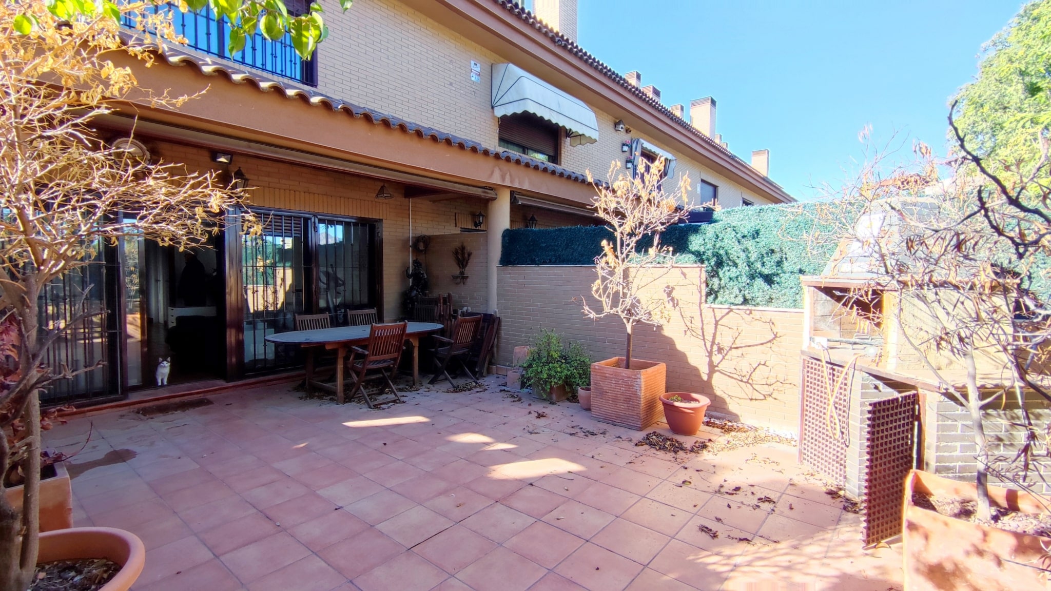 Accedemos a un salón-comedor amplio y muy luminoso, con chimenea funcional que aporta calidez y confort al espacio. En esta misma planta se ubica una cocina independiente totalmente equipada, un aseo de cortesía y salida directa a una magnífica terraza de aprox. 50 m², con porche y barbacoa—un lugar perfecto para celebraciones, comidas al aire libre o momentos de relax.