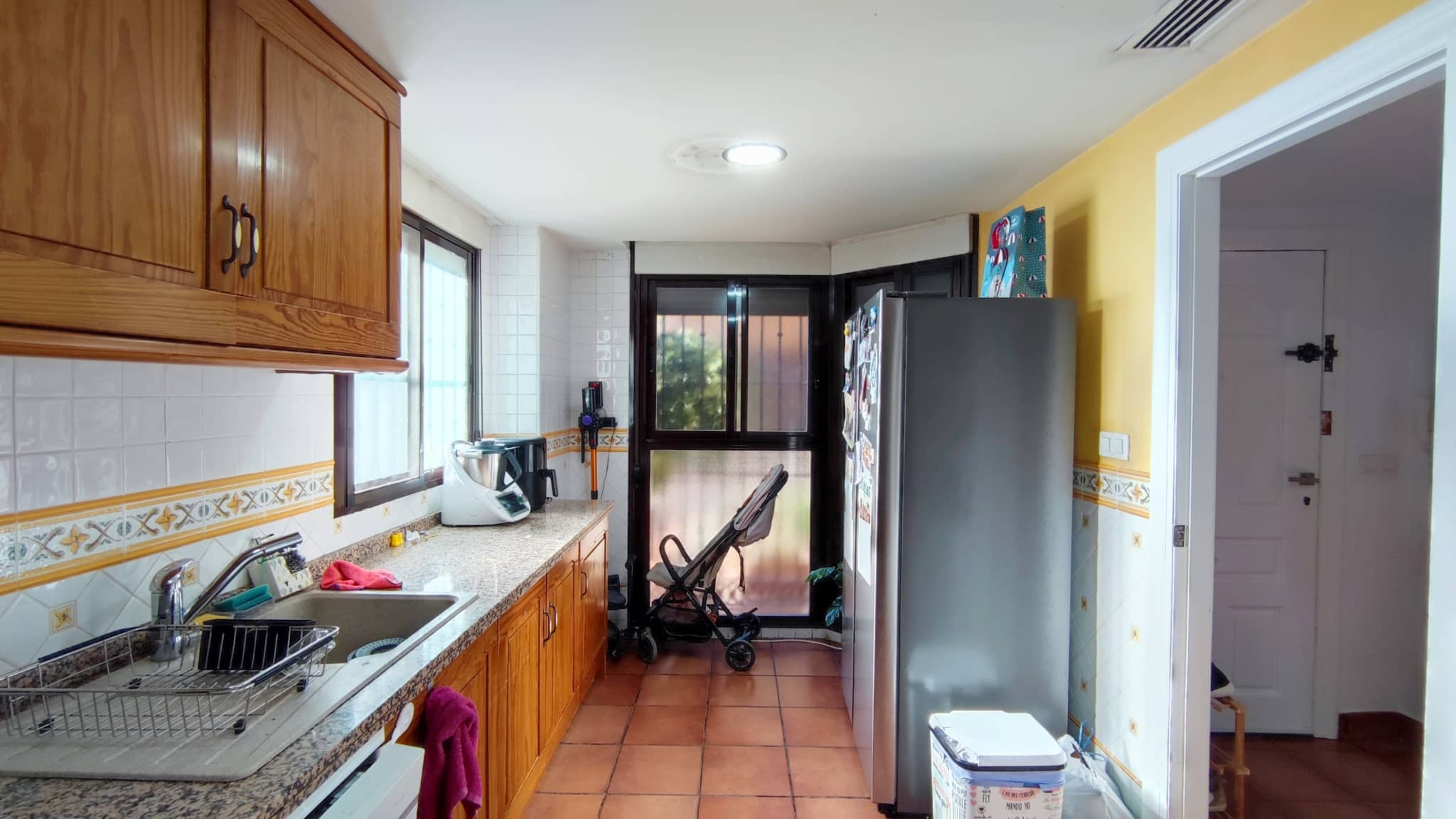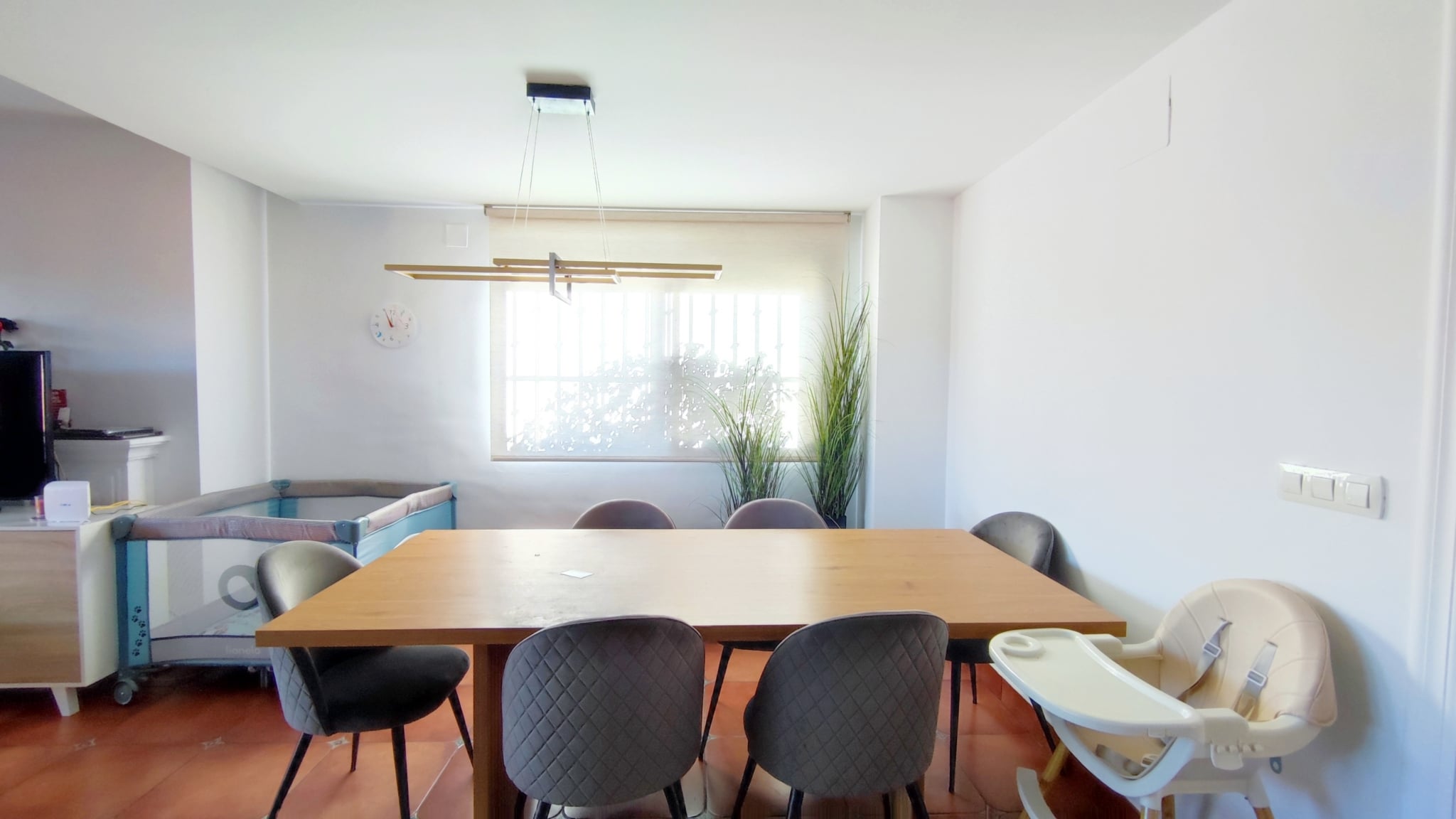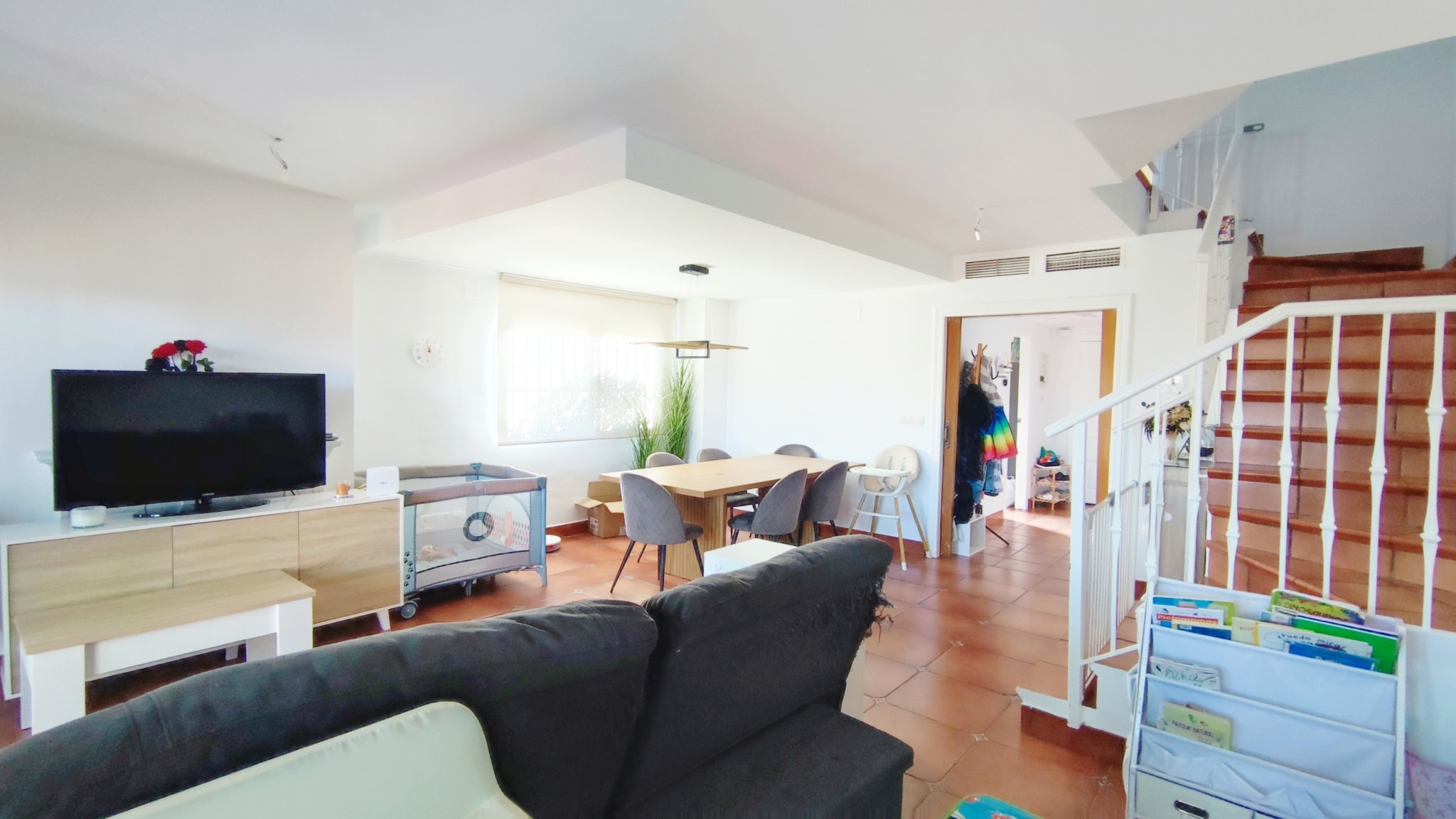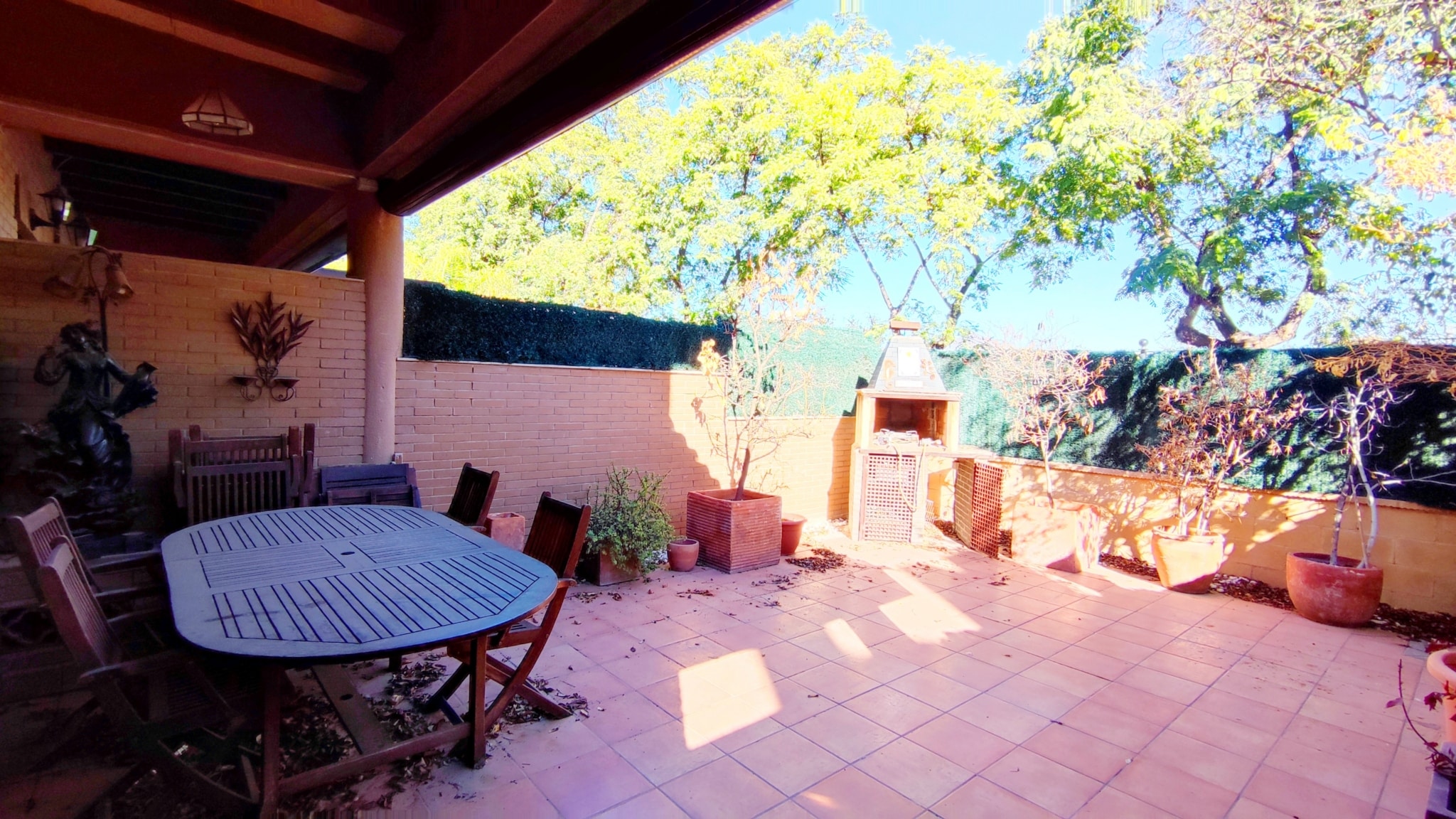 Accedemos a un salón-comedor amplio y muy luminoso, con chimenea funcional que aporta calidez y confort al espacio. En esta misma planta se ubica una cocina independiente totalmente equipada, un aseo de cortesía y salida directa a una magnífica terraza de aprox. 50 m², con porche y barbacoa—un lugar perfecto para celebraciones, comidas al aire libre o momentos de relax.